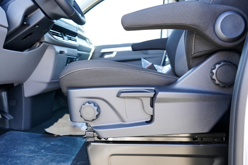 • Fotel kierowcy: reg. wys. +lędźwi, podłokietniki; 2-os. siedzenie +stolik i przedł. załad; ogrzewane, paski; +airbag